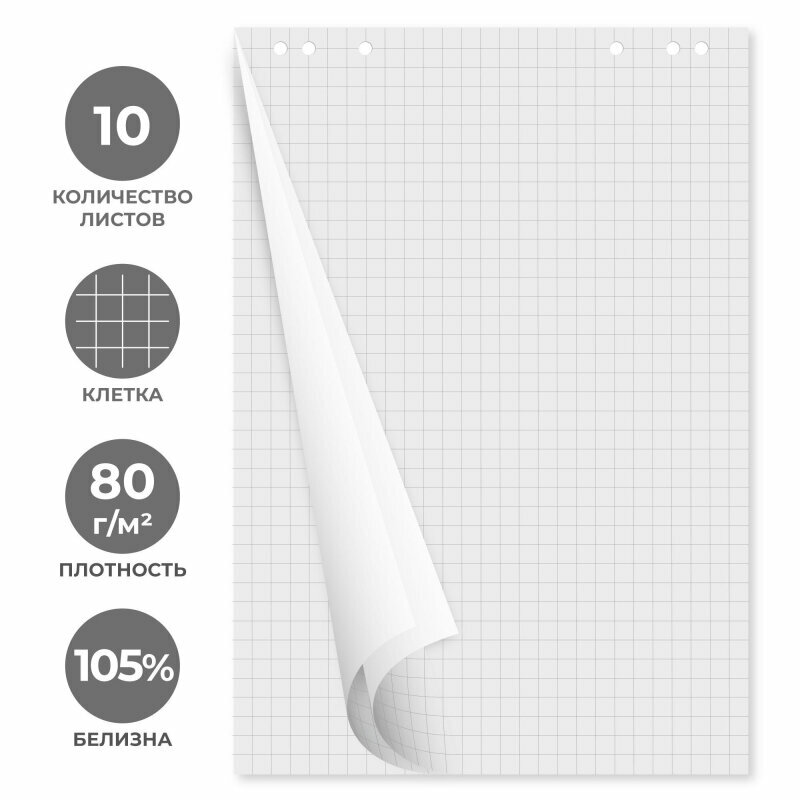 Бумага для флипчартов Attache 67.5х98 см белая 10 листов в клетку (80 г/кв.м), 445517 641 ₽
