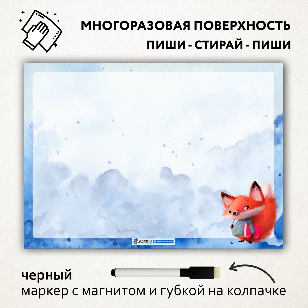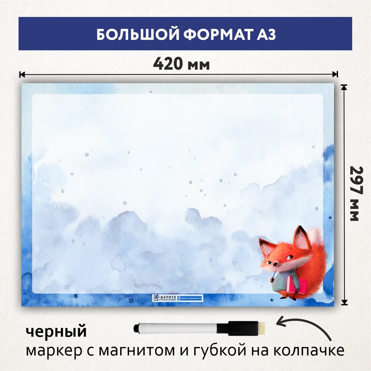 10 цен на Магнитная доска А3, планер (планинг) магнитный на холодильник, магнит для заметок многоразовый, маркер с магнитом, Лисёнок №1, magnetic_board_fox_А3_1