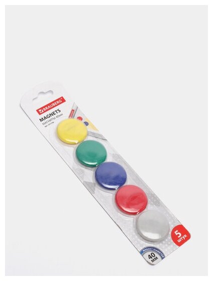 Отзывы на Магниты большого диаметра, 40 мм, комплект 5 штук, цвет ассорти, в блистере, BRAUBERG, 231730