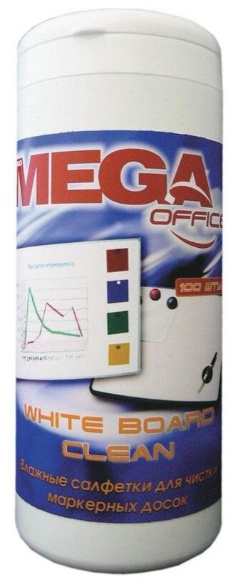 Салфетки для чистки белых маркерных досок Mega Office White Board Clean (100 штук вискоза), 134429 439 ₽