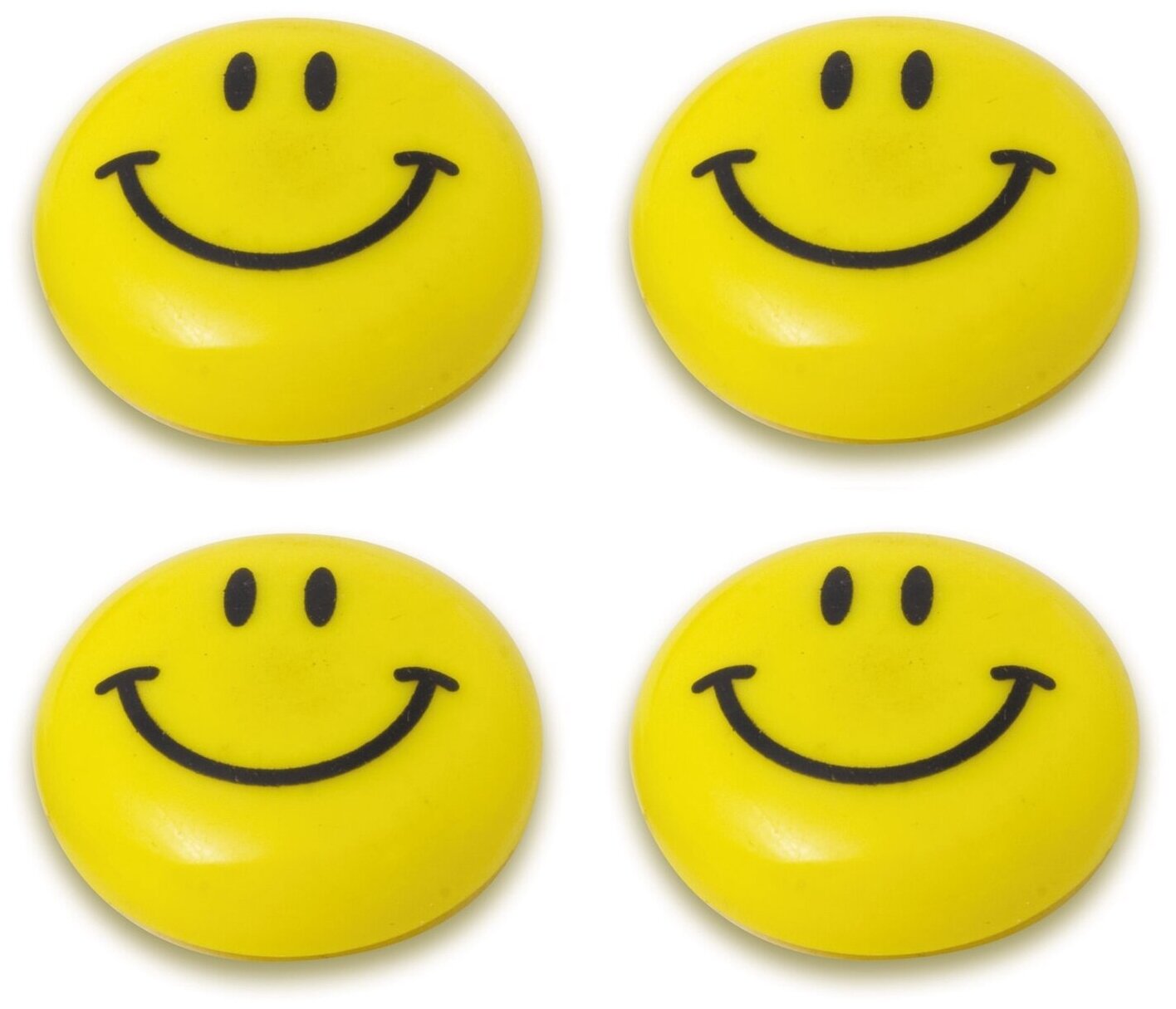 10 цен на Магниты диаметром 30 мм, комплект 4 штуки, "смайлики", желтые, в блистере, BRAUBERG, 231727