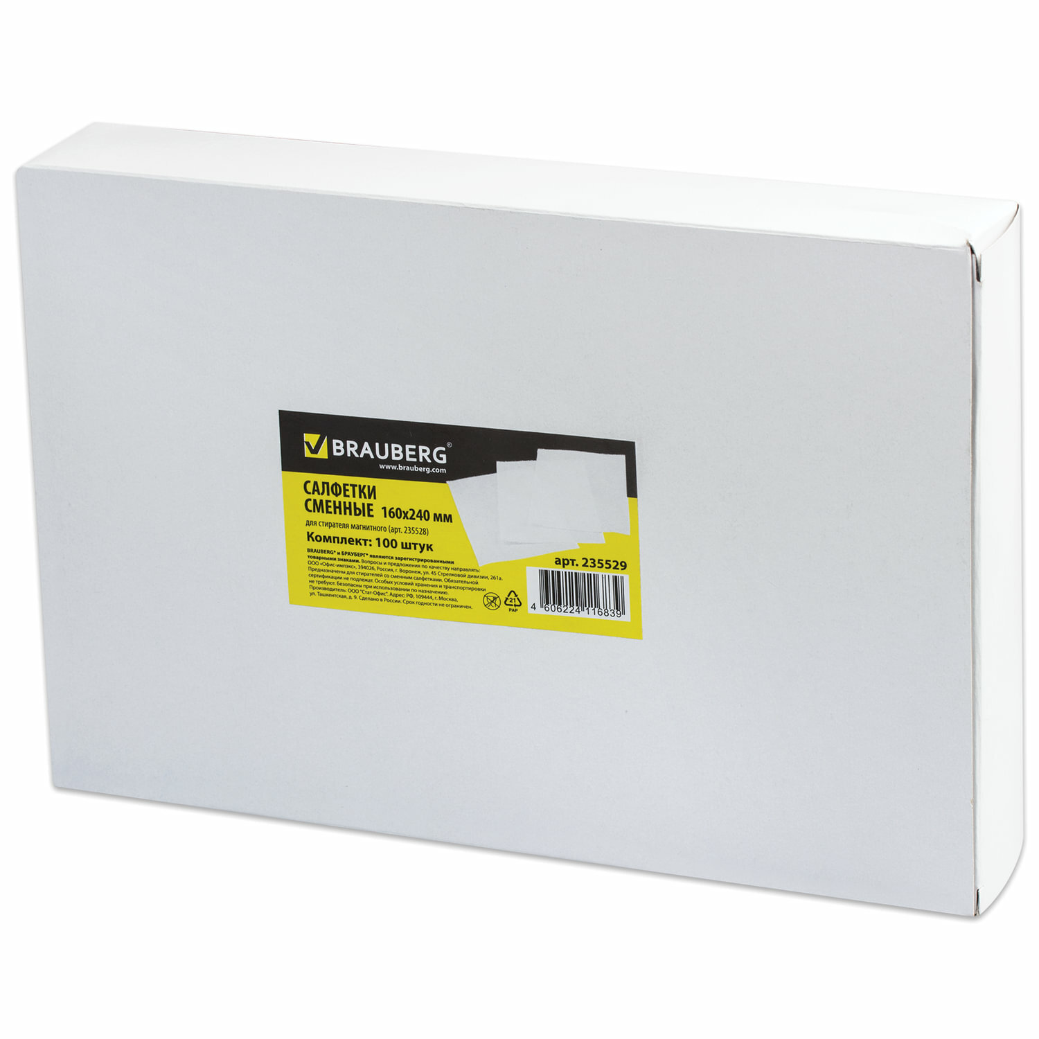 Салфетки сменные для стирателя магнитного 235528 (160х240 мм), комплект 100 шт., россия, BRAUBERG, 235529, 235529 877 ₽
