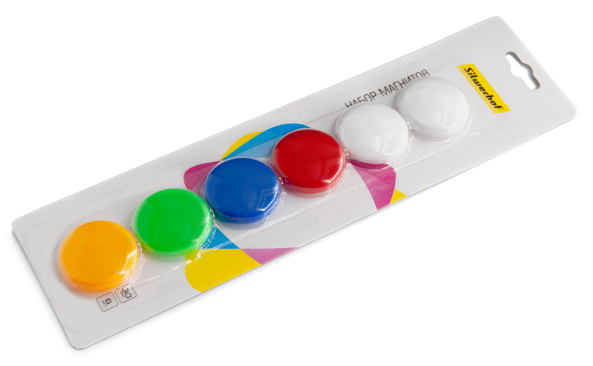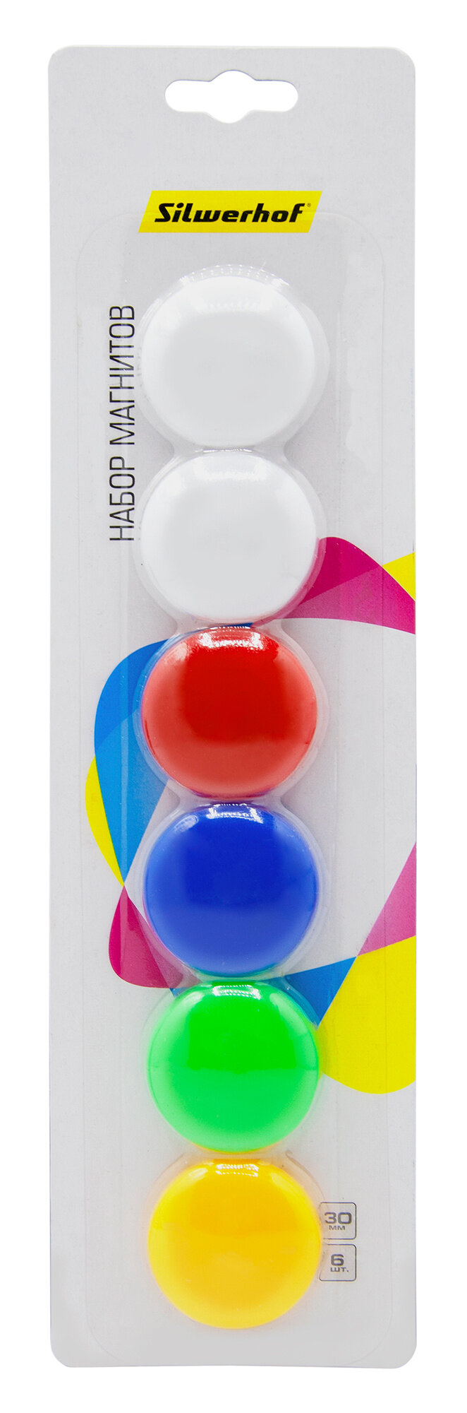 Магнит Silwerhof Classic для досок пластик ассорти диаметр 30мм круглый (упаковка: 6 штук) информация: