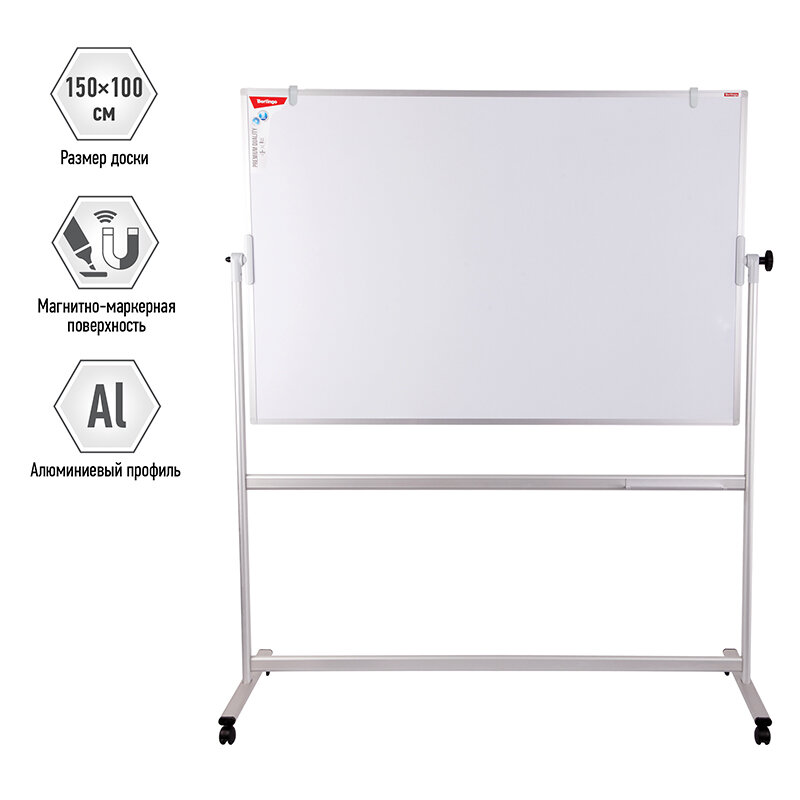 Доска магнитно-маркерная Berlingo "Premium", 100*150см, двусторонняя, поворотная, мобильная информация: