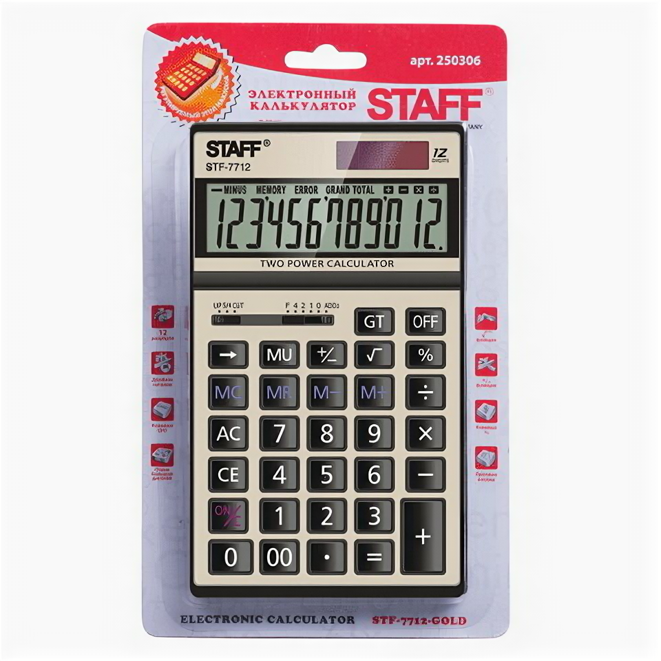 Калькулятор настольный STAFF STF-7712-GOLD, 12 разрядов информация:
