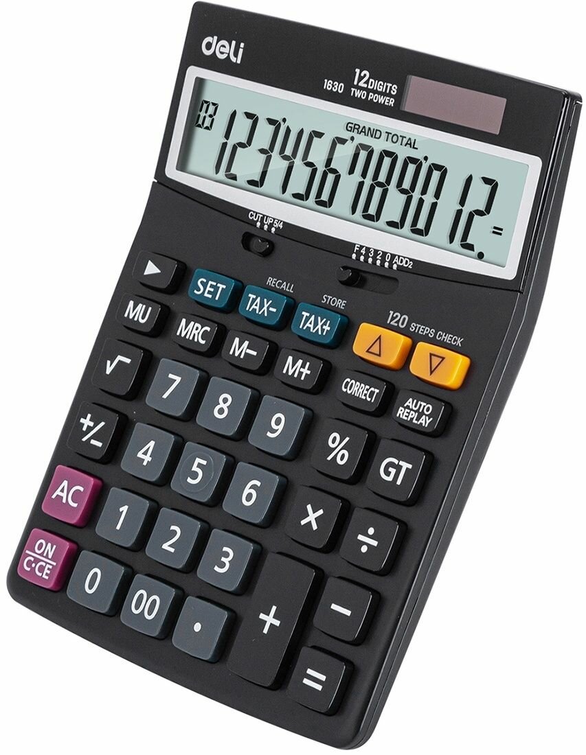 10 цен на Калькулятор настольный Deli полноразмерный, 12 разрядов, двойное питание, 188x140 мм, черный (E1705)