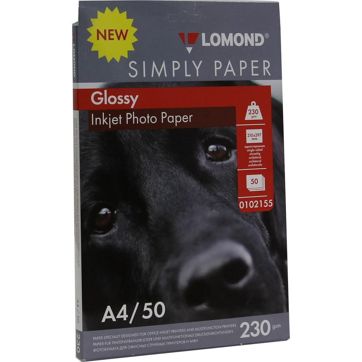 Фотобумага Lomond Simply, A4, для струйной печати, 50л, 230г/м2, белый, покрытие глянцевое [0102155]