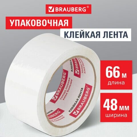 Клейкая лента упаковочная 48 мм х 66 м, белая, толщина 45 микрон, BRAUBERG, 440158 информация: