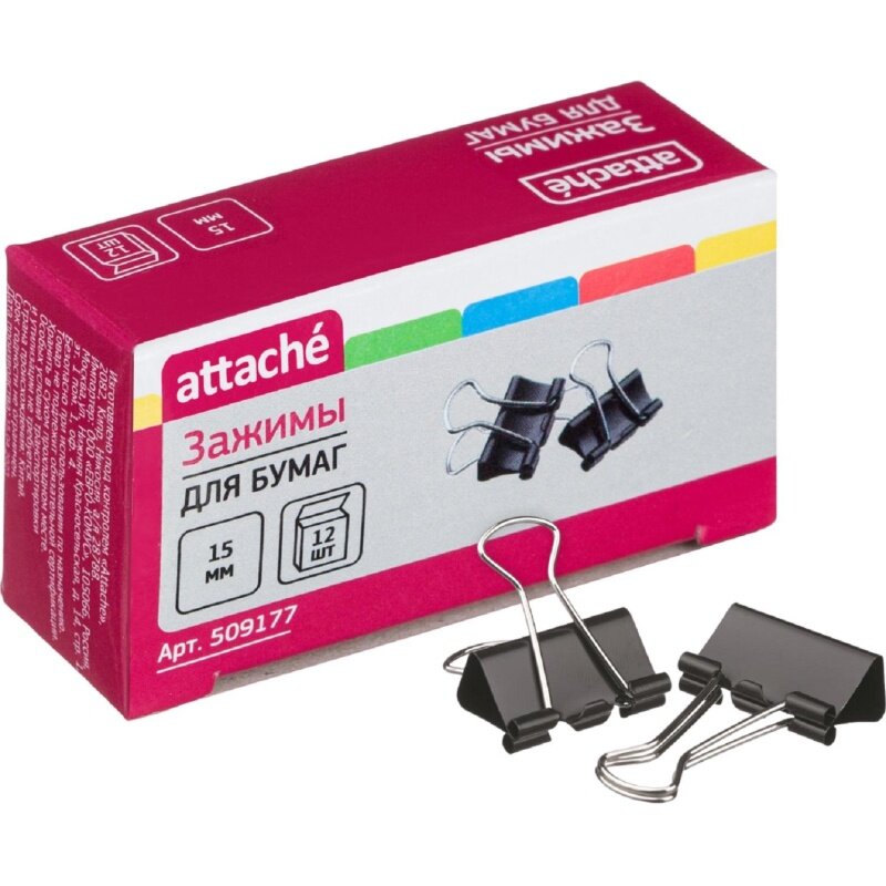 Зажимы для бумаг 15мм Attache 12шт/уп Attache, в ка ртонной коробке, 12 уп. 725 ₽