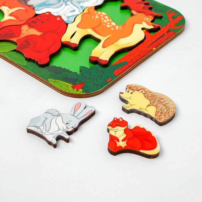 Деревянные развивающие пазлы для малышей Зоопазл Лесные жители