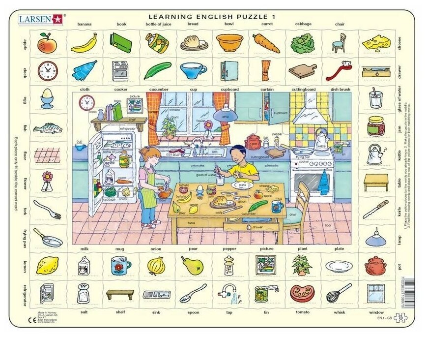 Пазлы для детей Larsen "Изучаем английский. Кухня", 70 элементов, EN1