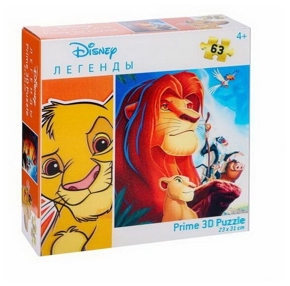 Prime 3D Пазл Король Лев 63 элемента Disney Легенды PR13856 с 3 лет