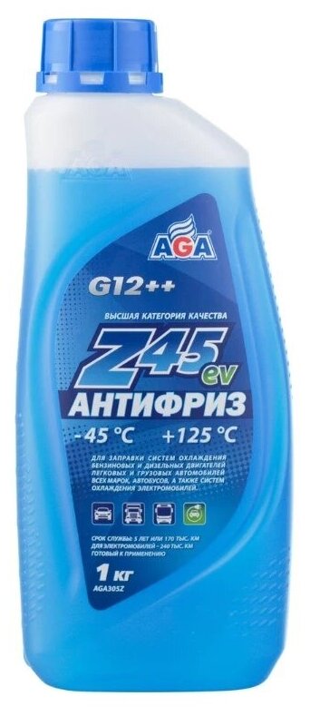 AGA AGA305Z Антифриз, готовый к применению, синий, -45С, 1кг, G-12++ информация: