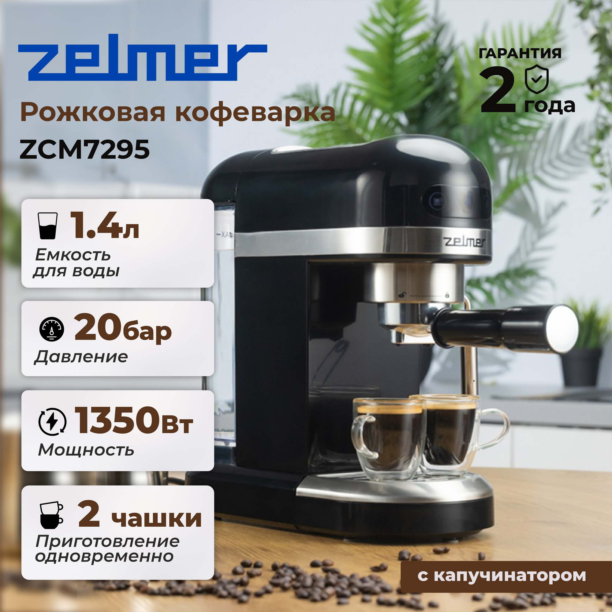Кофеварка Zelmer ZCM7295 рожковая, 1350 Вт, черный информация: