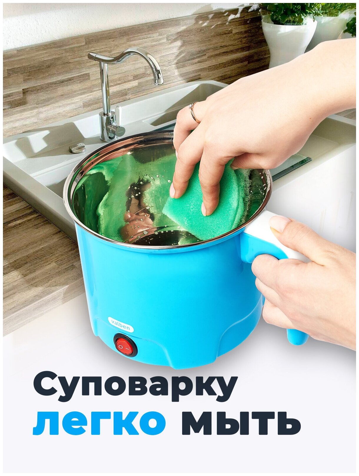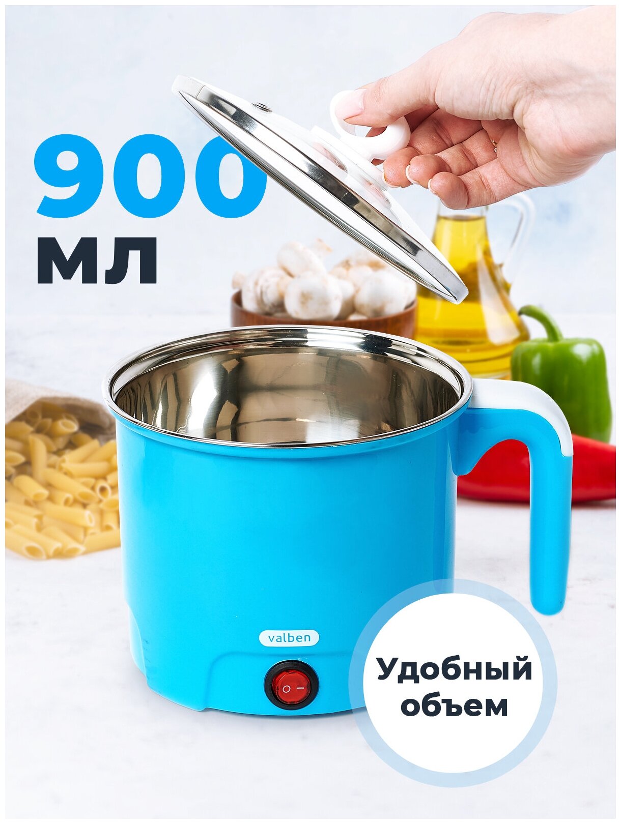Кастрюля электрическая, суповарка, рисоварка, Valben, 0,9л, 400 Вт, голубой информация: