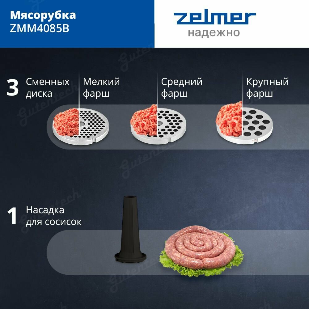 Мясорубка ZELMER ZMM4085B, 1900 Вт, черная информация: