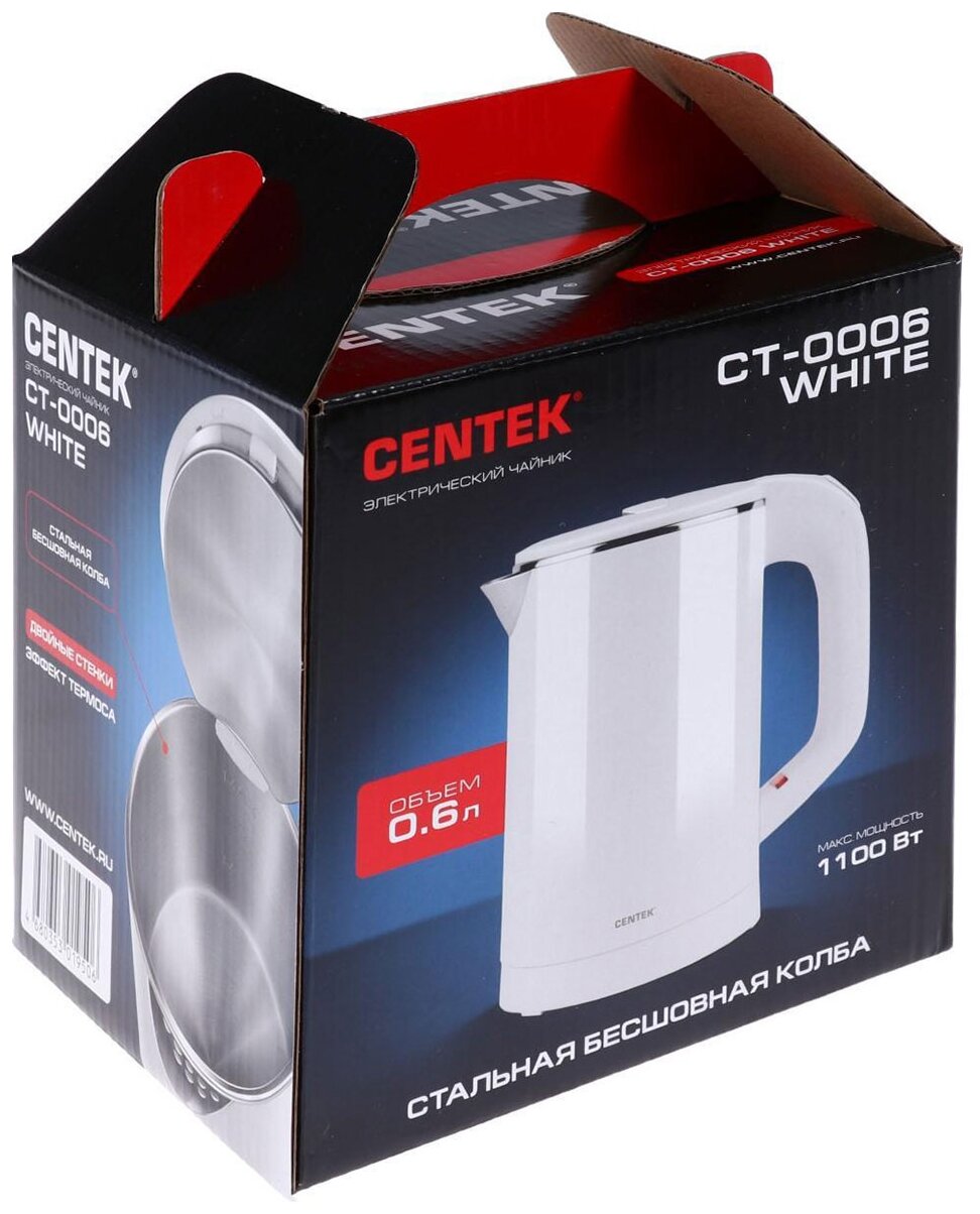Чайник CENTEK CT-0006 белый 0,6 л, металл, двойные стенки
