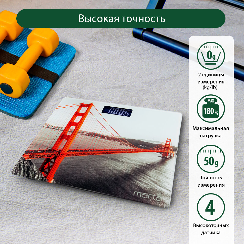 MARTA MT-SC1695 Золотые ворота весы напольные сенсор, встроенный термометр информация: