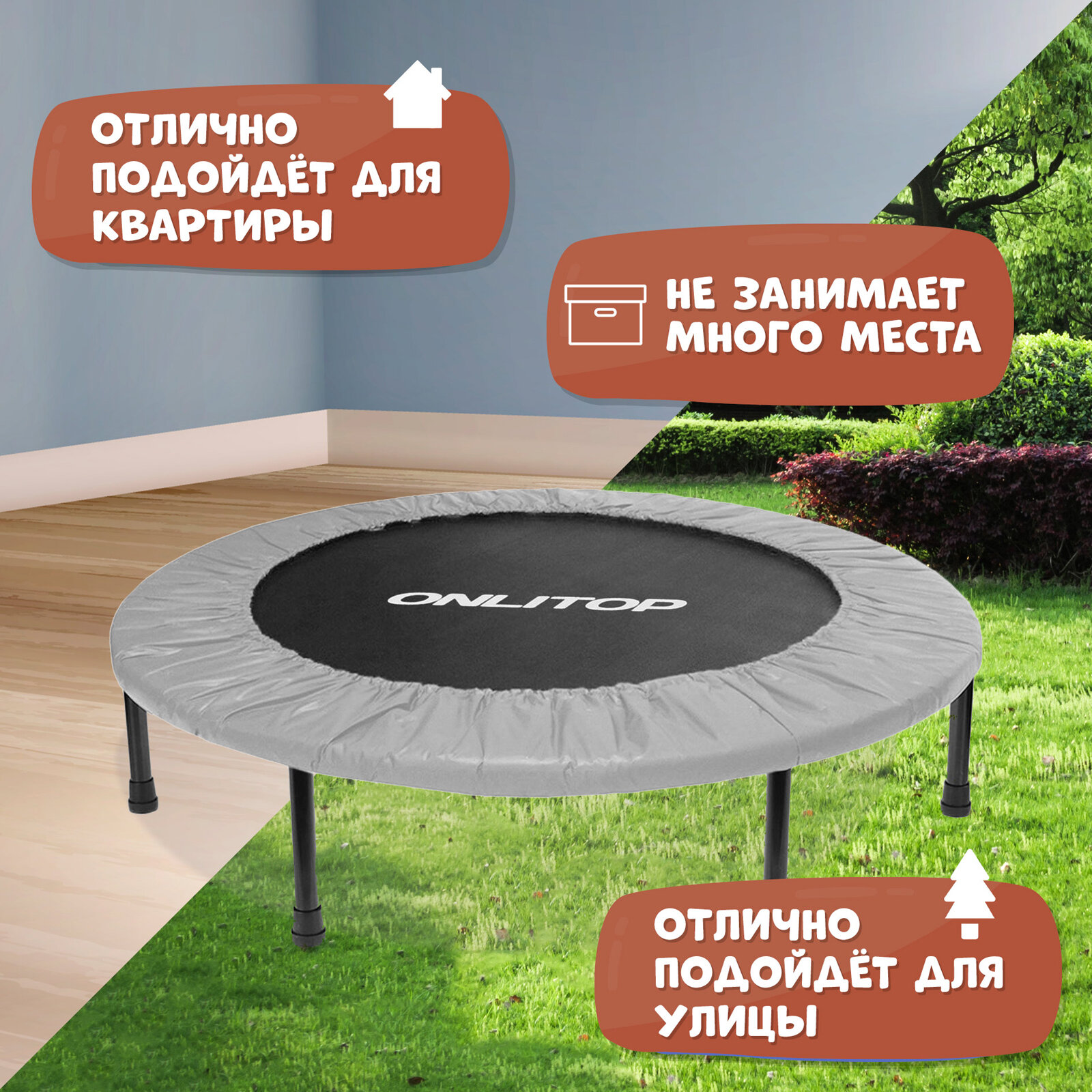 Отзывы на Батут ONLITOP, диаметр 115 см, максимально допустимый вес 80 кг, цвет серый
