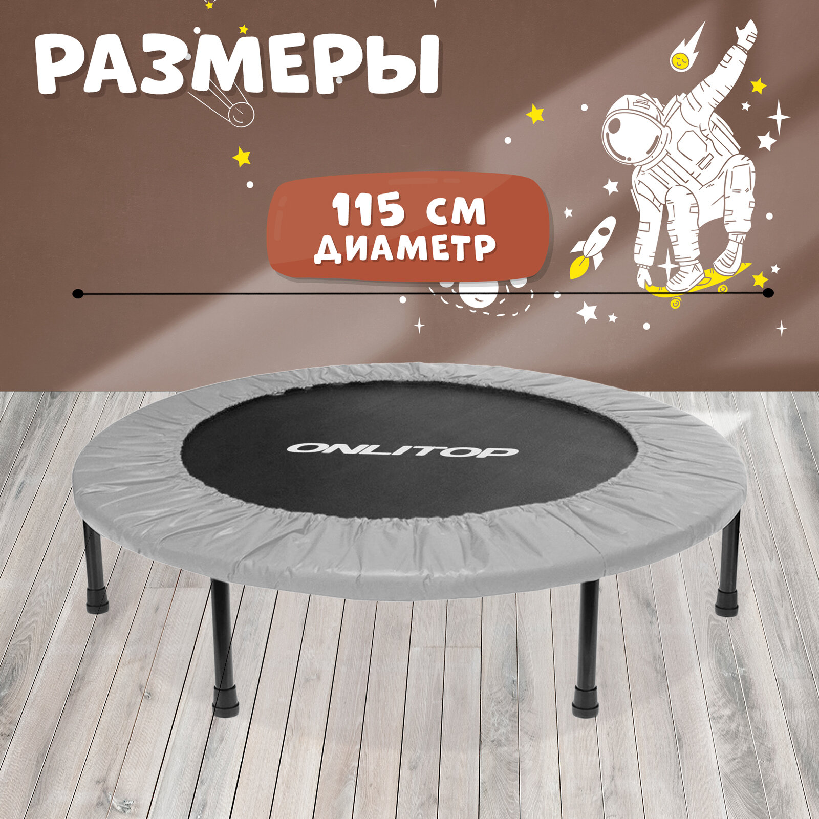 Батут ONLITOP, диаметр 115 см, максимально допустимый вес 80 кг, цвет серый информация: