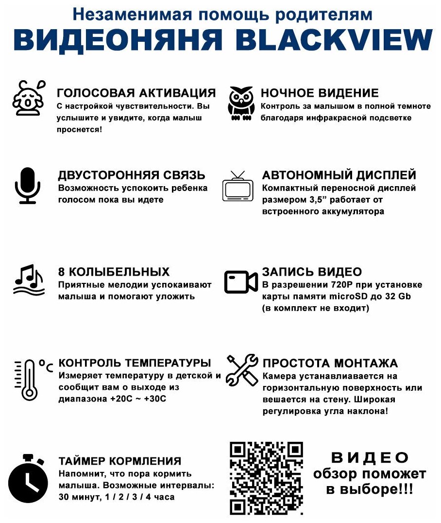 Отзывы на Беспроводная видеоняня с монитором Baby Monitor (голосовая активация, ночное видение, колыбельные, термометр) Blackview BM-01