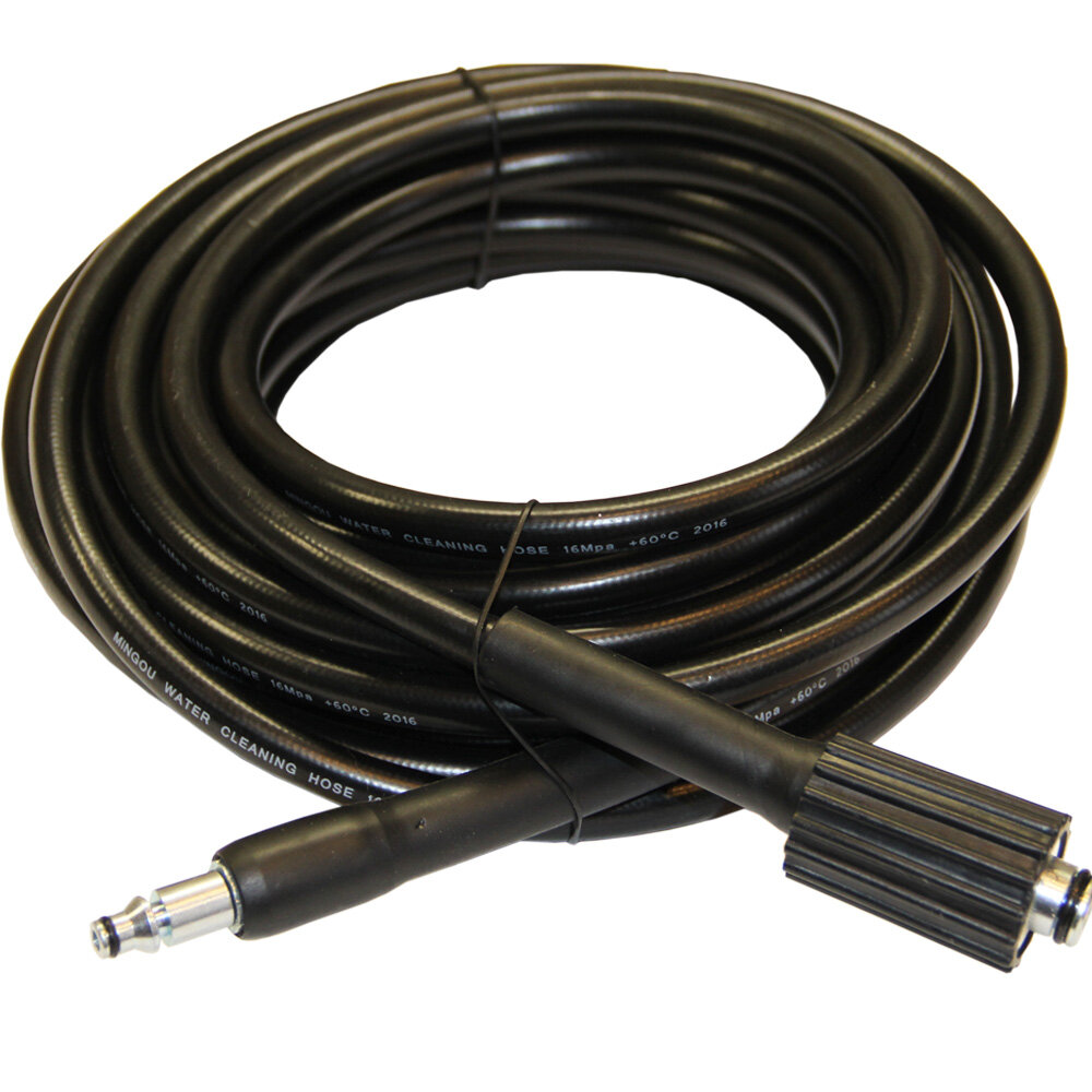 | Дополнительная информация | Шланг бытовой пластиковый с внутренней оплеткой из нитки. Вход на минимойку гайка, выход штуцер быстросъемный (см. фото) |