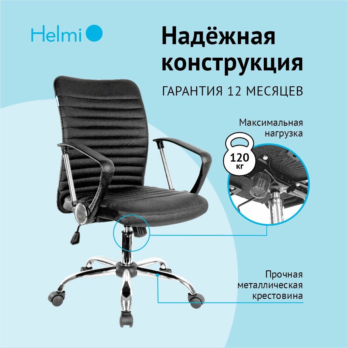 Кресло оператора Helmi HL-M09 LUX, искусственная кожа черная, механизм качания, хром информация: