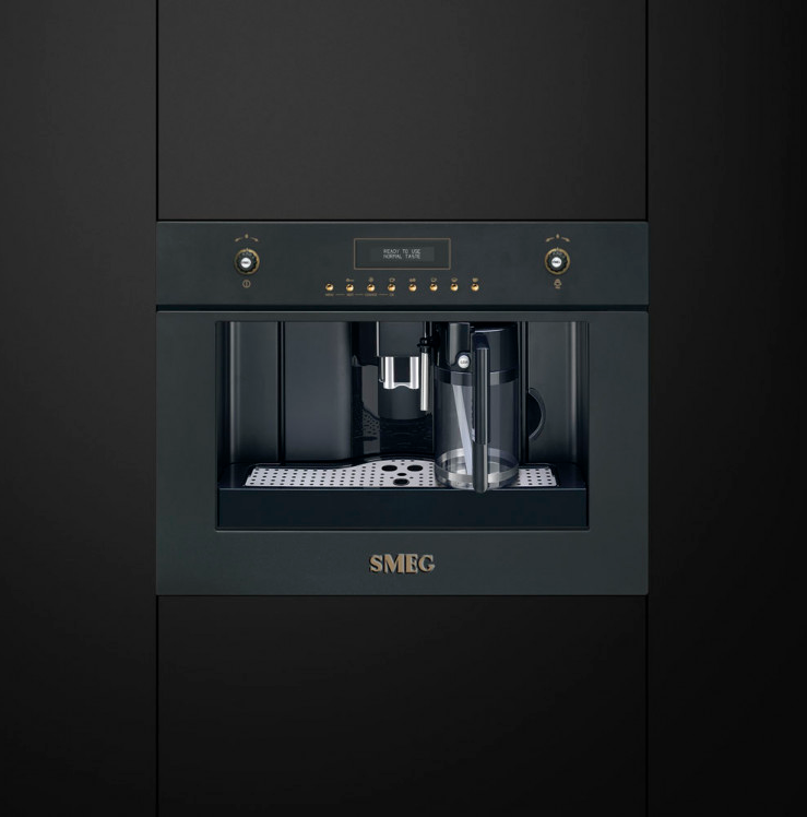 Встраиваемая кофемашина SMEG/ Coloniale, встраиваемая автоматическая кофемашина, цвет: антрацит, фурнитура позолоченная и латунная в комплекте