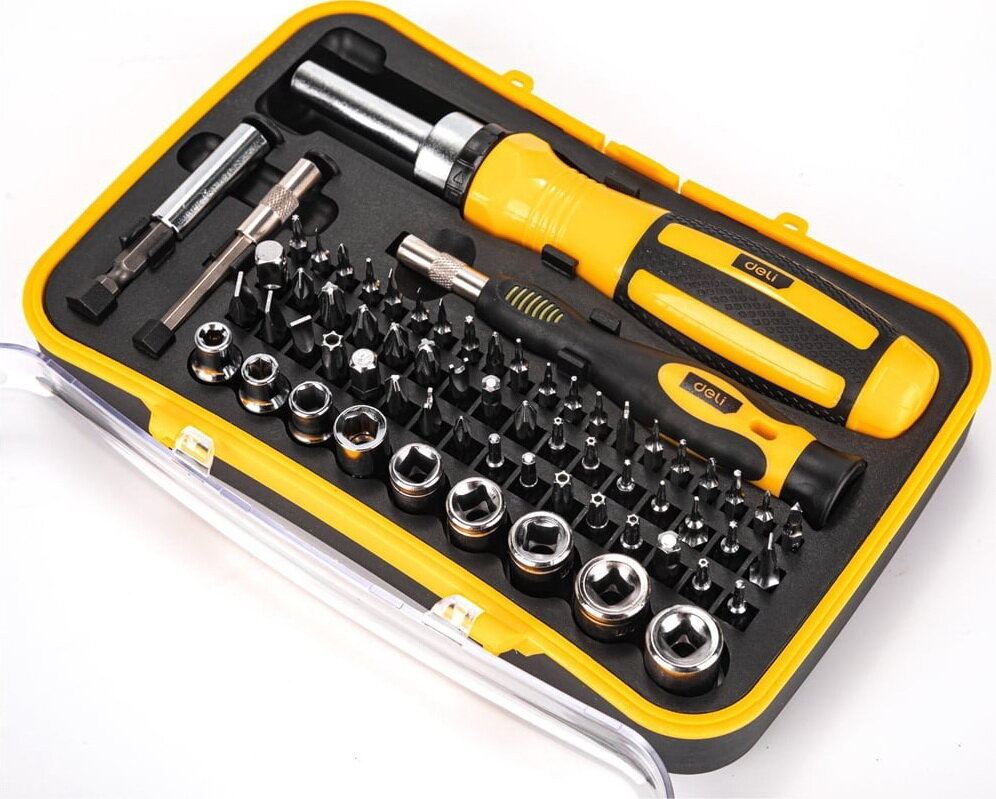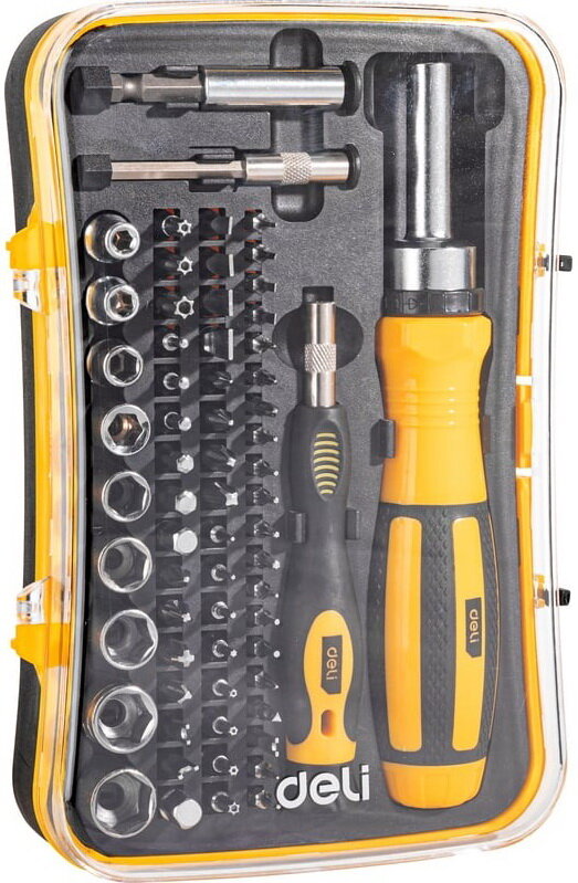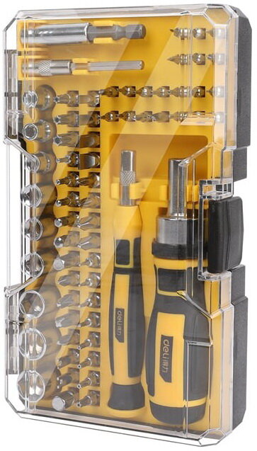 Отзывы на Набор прецизионных отверток Deli DL3565 65 предметов Материал бит Cr-v. Пластиковый кейс.