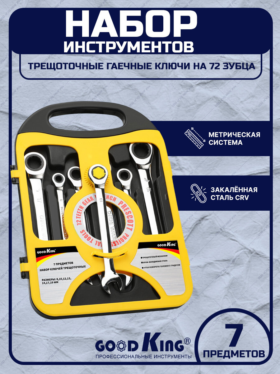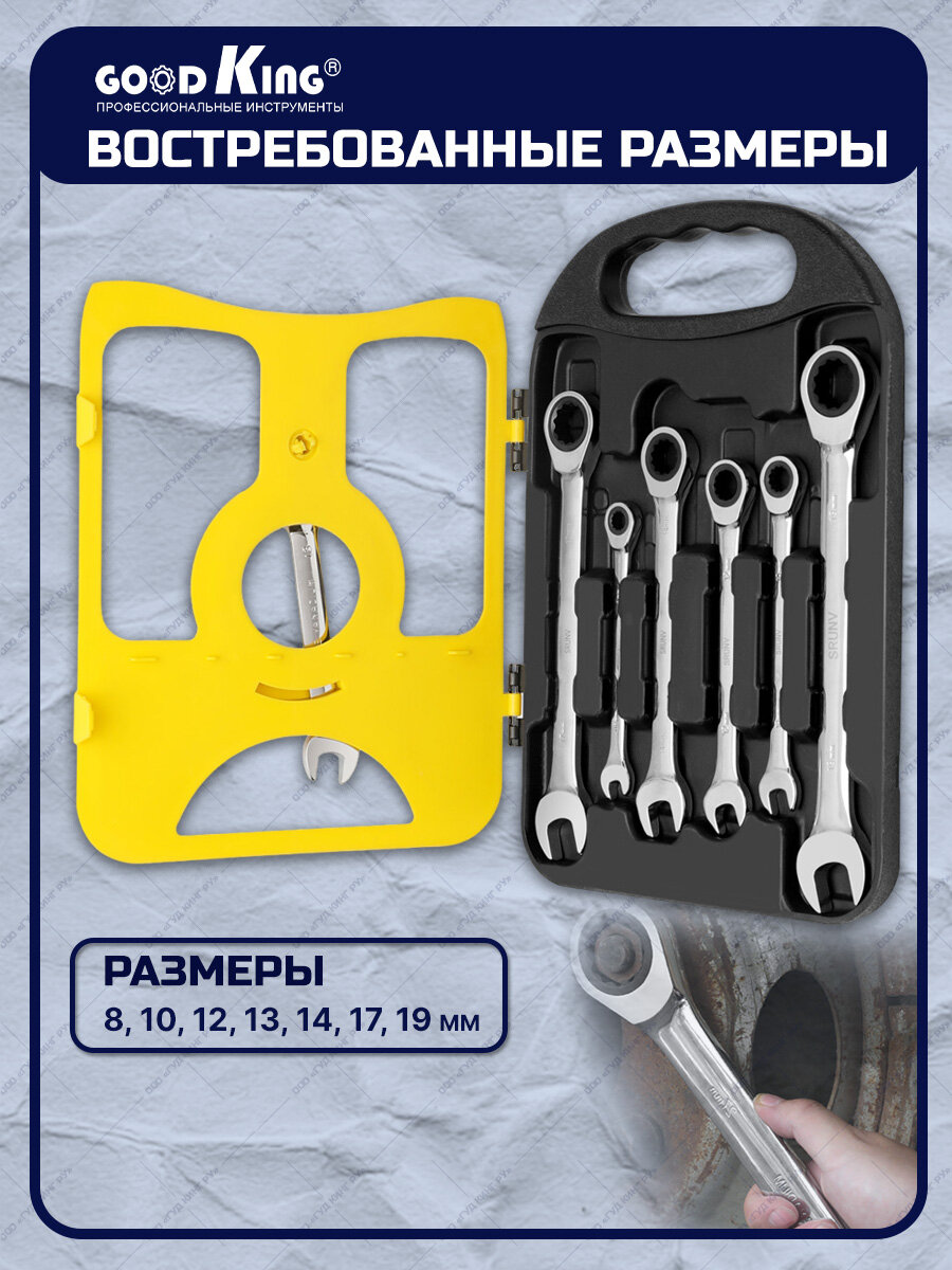 Отзывы на Набор комбинированных трещоточных ключей 7 шт GOODKING TK-1007, набор инструментов, трещеточный клюс, ключ рожковый, гаечный ключ