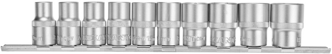 Набор торцевых головок Rexant 1/2", шестигранные, 10-22 мм, CrV, 10 шт.