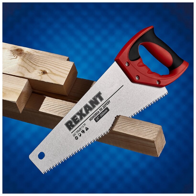 Ножовка по дереву REXANT Зубец 350 мм, 7-8 TPI, каленый зуб 2D, двухкомпонентная рукоятка