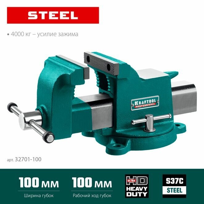 10 цен на KRAFTOOL STEEL, 100 мм, стальные слесарные тиски (32701-100)
