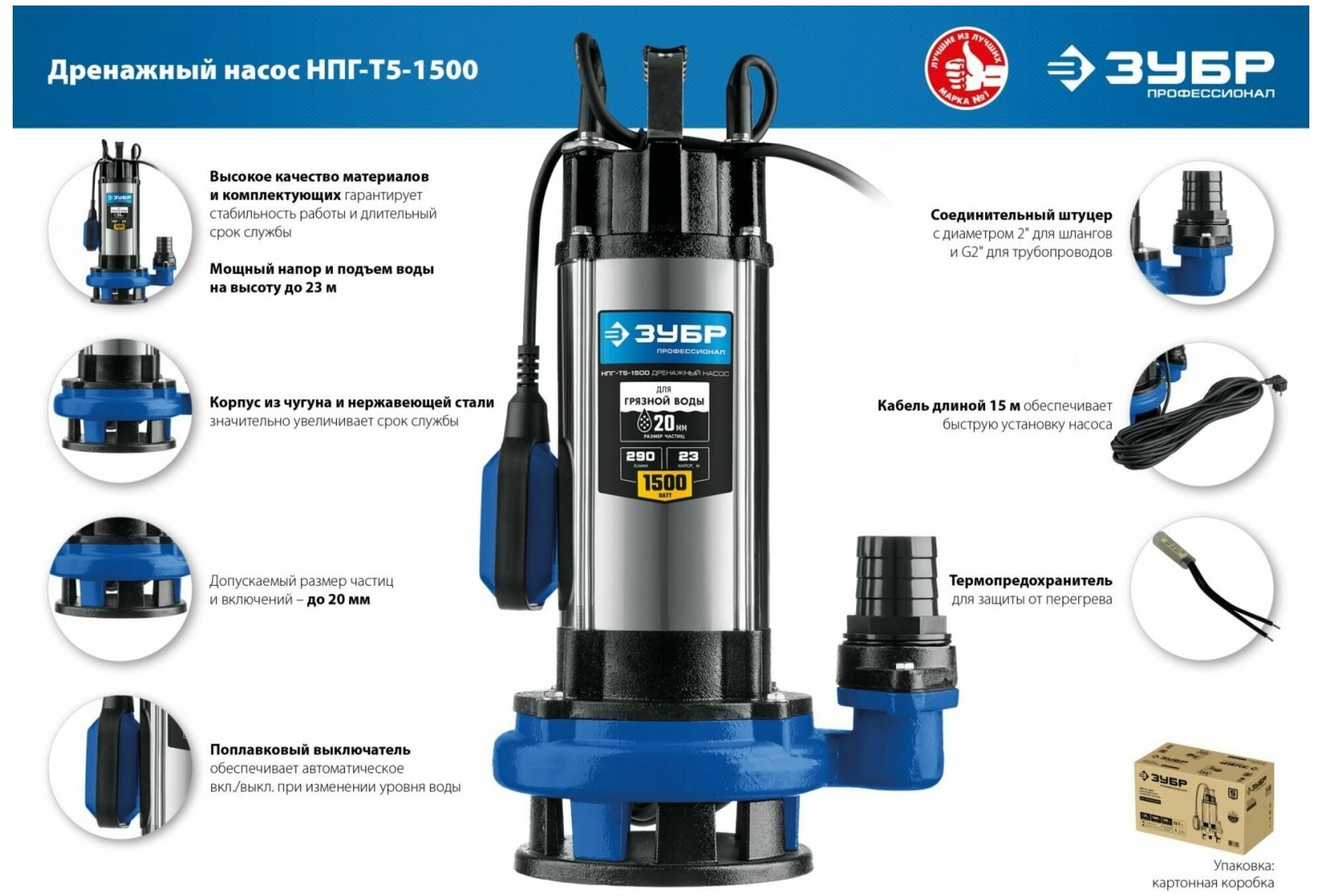 Насос дренажный ЗУБР НПГ-Т5-1500 информация: