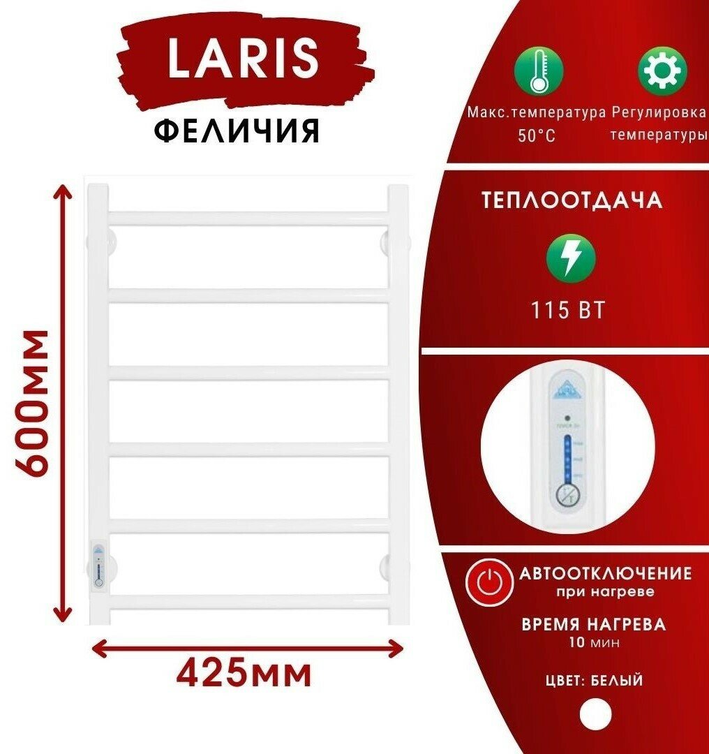 Полотенцесушитель с/т Laris Феличия ЧКБ П6 400/600 левый тэн белый 73207587 RU информация: