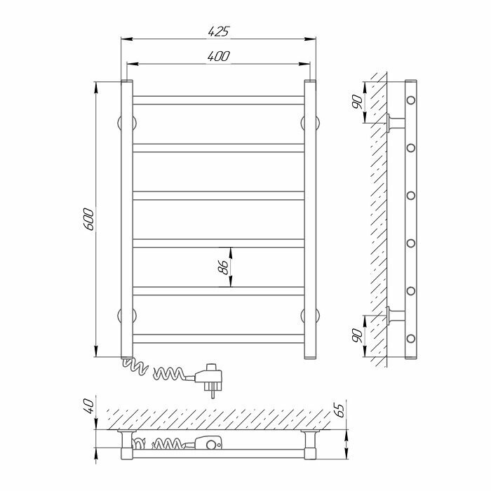 Полотенцесушитель белый Laris Феличия ЧКЧ П6 400/600 черный (73207610 скрытое левое подключение)