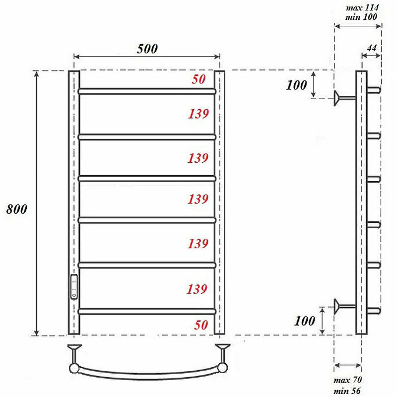 Point Полотенцесушитель электрический П6 500x800 диммер слева, белый Pn04758w .
