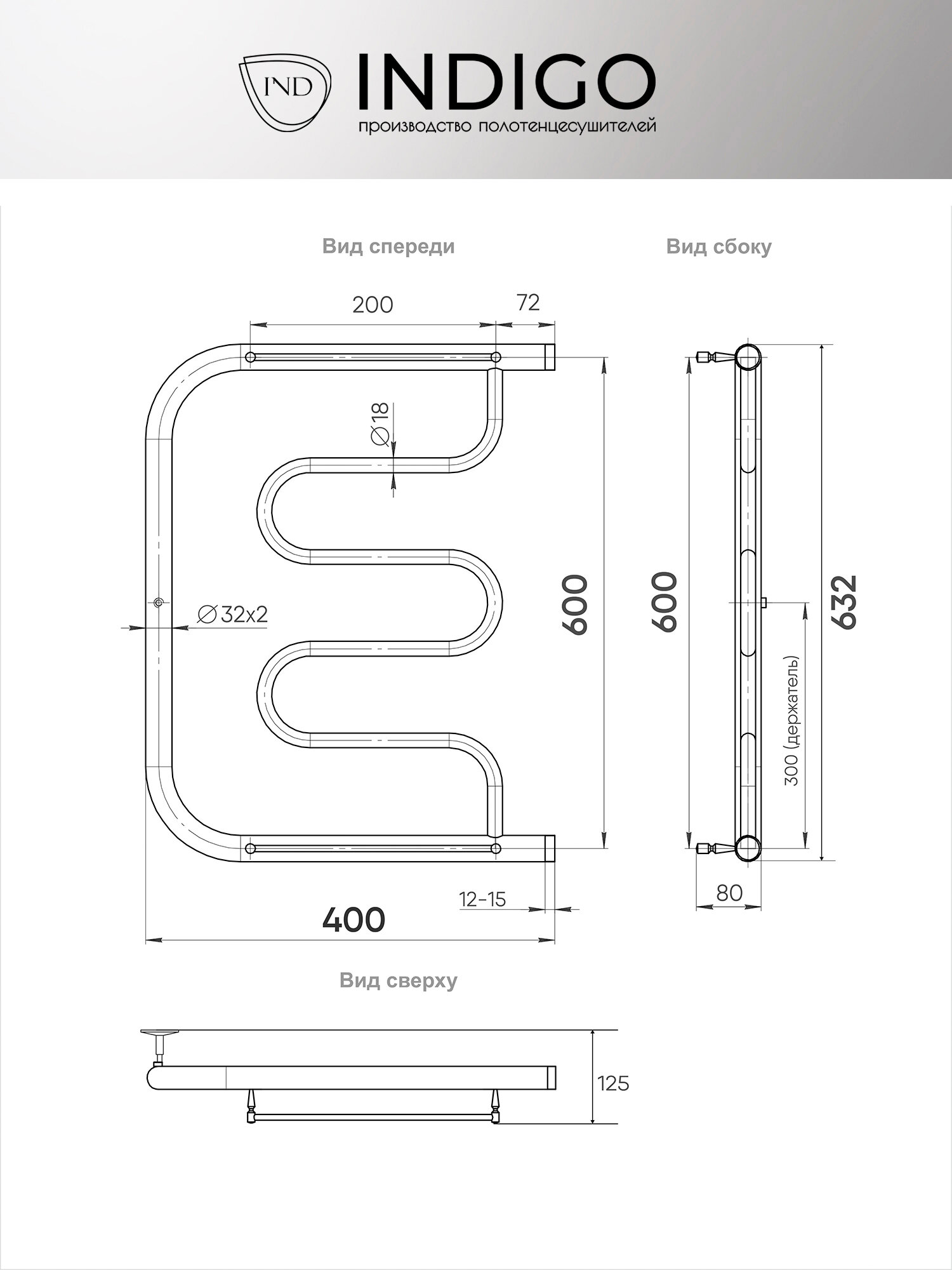 Полотенцесушитель водяной INDIGO Фокстрот Standart с полочкой 60/40 информация: