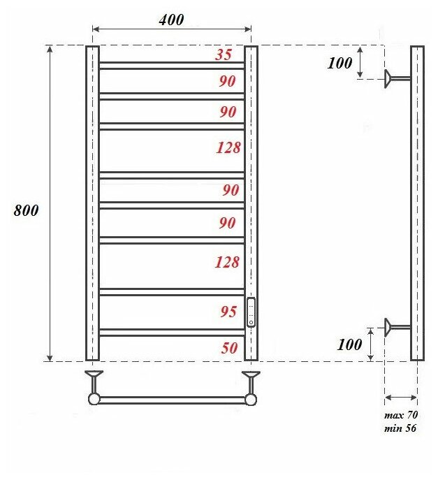 Полотенцесушитель электрический Point П8 400x800 диммер справа, белый (PN10848W) информация: