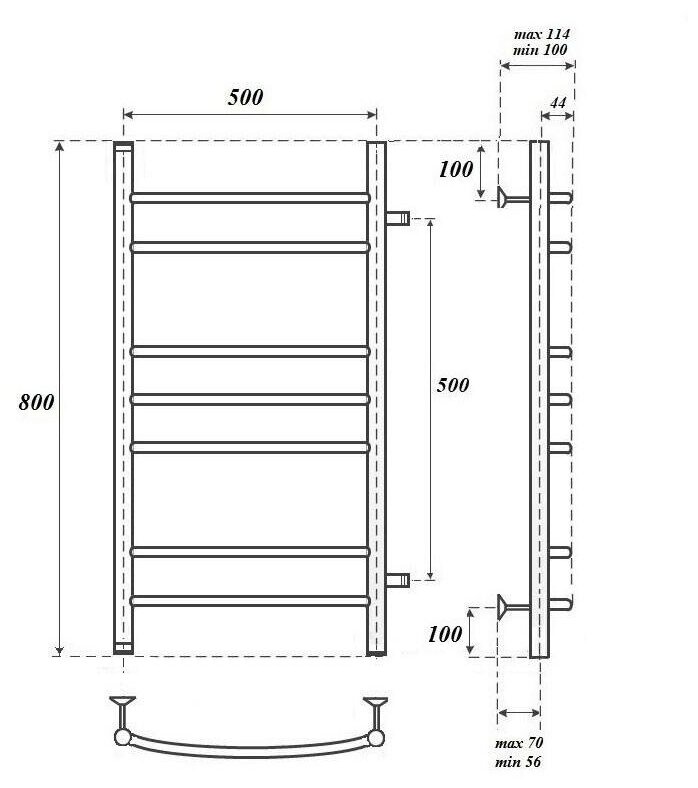 Полотенцесушитель водяной Point PN05558 П7 500x800 хром . информация: