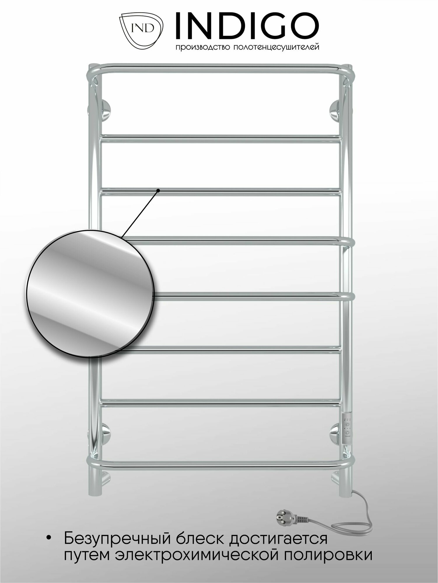 Полотенцесушитель электрический INDIGO Europe Lux 60/50 с таймером полированный