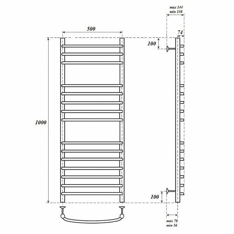 Полотенцесушитель Омега (Ширина:500, Высота:1000)