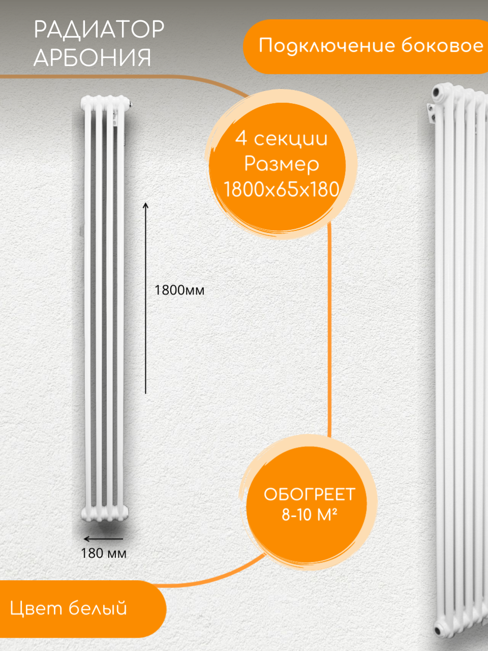 Отзывы на Стальной трубчатый Радиатор Arbonia 2180 Боковое подключение; Количество секций:4 Цвет: Белый