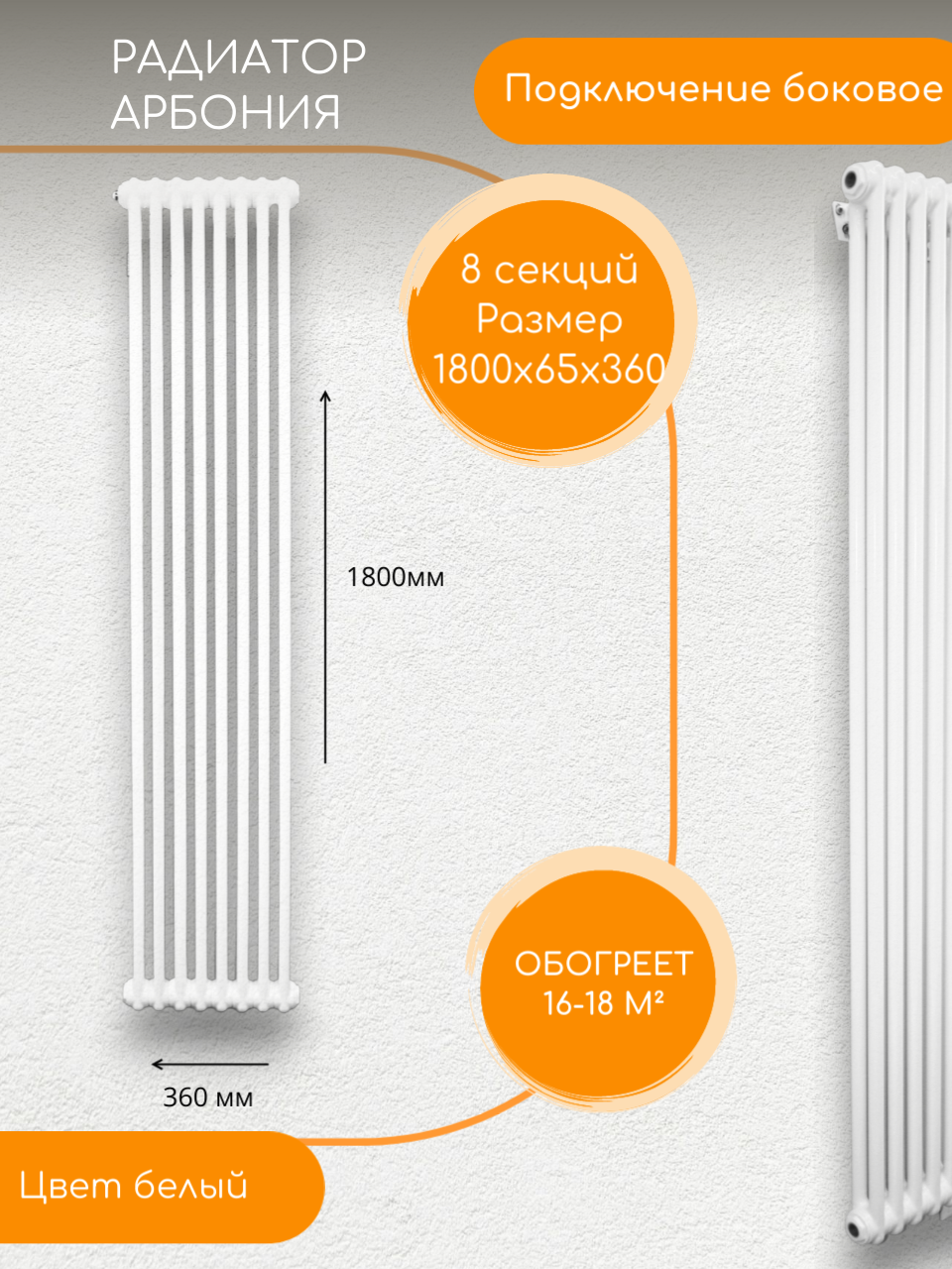 Отзывы на Стальной трубчатый Радиатор Arbonia 2180 Боковое подключение; Количество секций:8 Цвет: Белый