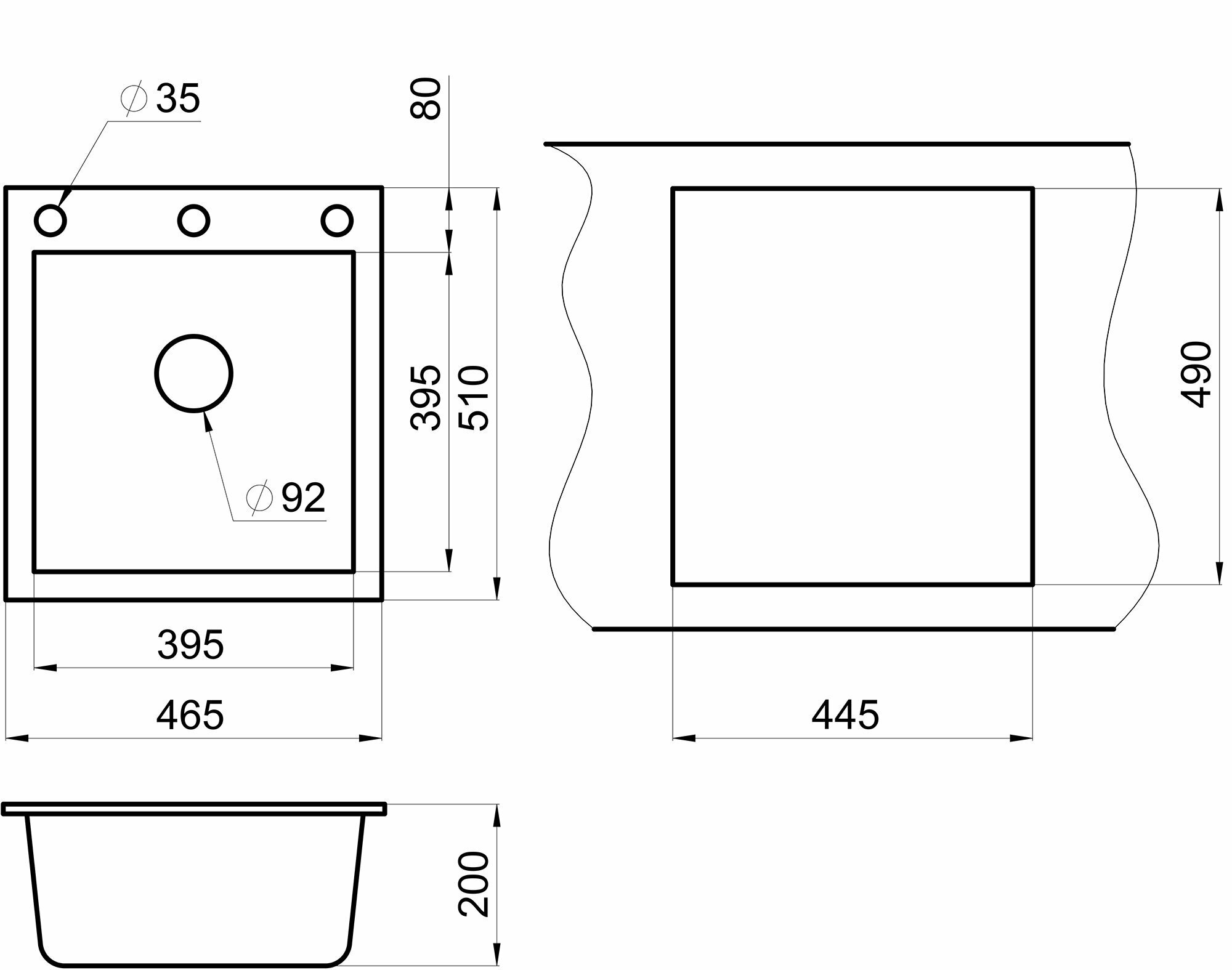 Отзывы на Кухонная мойка кварцевая Granula GR-4651 односекционная квадратная, врезная, чаша 395х395, цвет графит (4651bg)