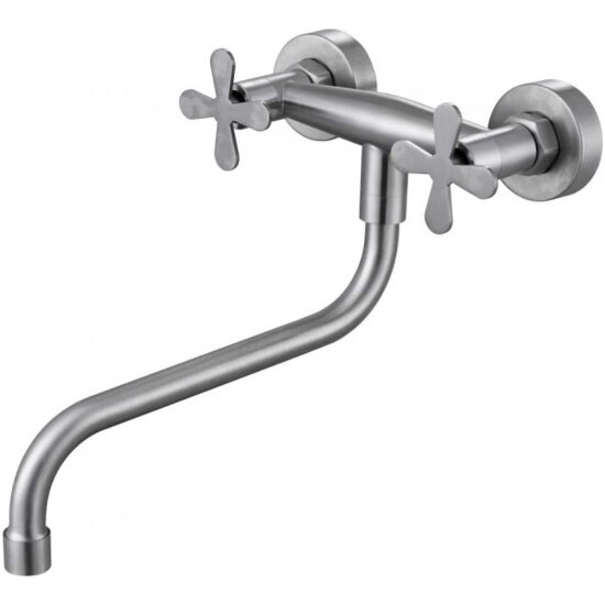 Смеситель на раковину настенный Эверест B46-350 с круглым поворотным изливом, кран-буксы 1/2", хром