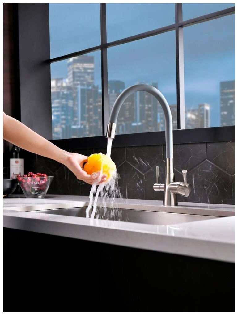 Смеситель Lemark Comfort LM3075BN-Silver для кухни с гибким изливом и подключением к фильтру с питье