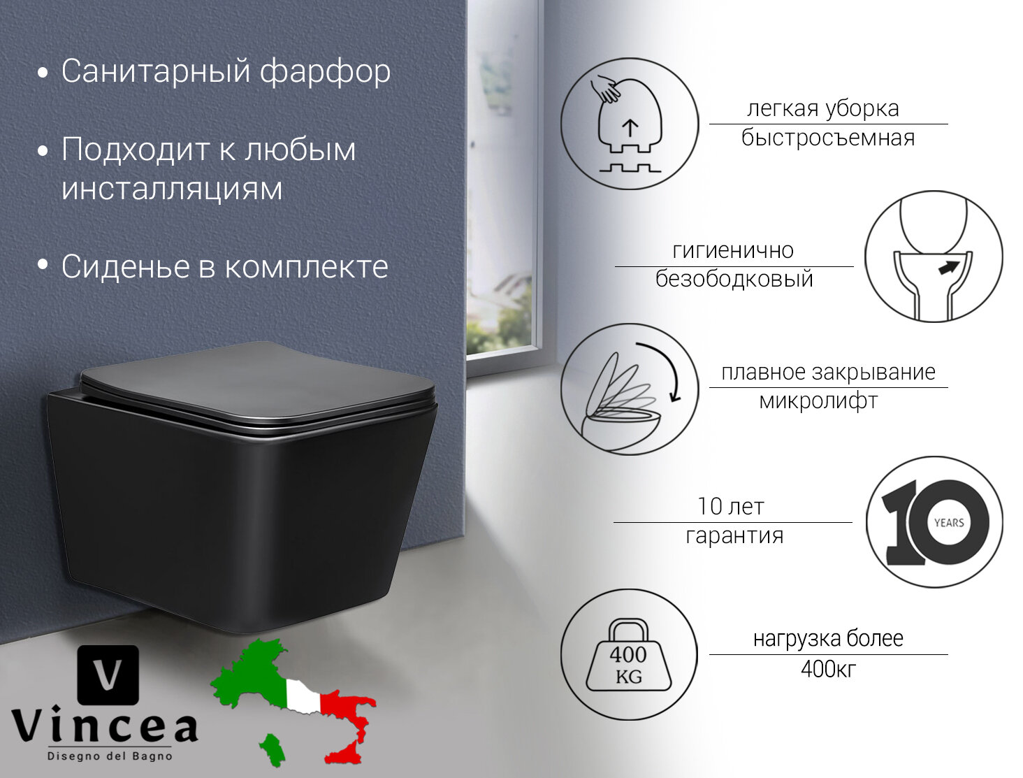 Унитаз Vincea Q-Line VT1-12MB подвесной Черный матовый с сиденьем Микролифт информация: