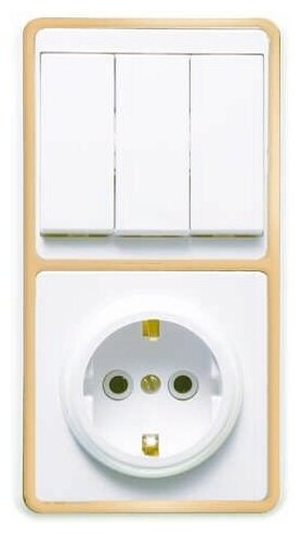 Блок БКВР-033 Бэлла (3-кл. выкл. + розетка с заземл.) зол. Кунцево, кунцево-электро 5844 (1 шт.)