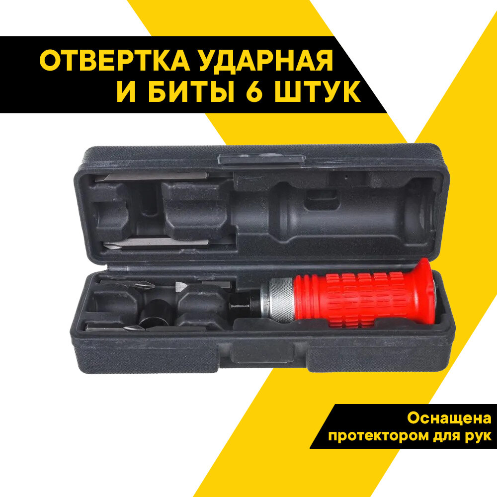 10 цен на Отвертка ударная с защитой рук 6 насадок, футляр автоdело 40001